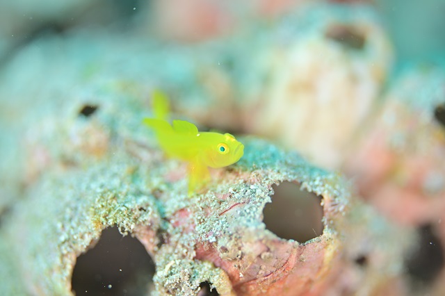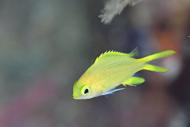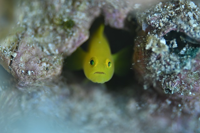 よく見ると、キンギョハナダイやコガネスズメダイに混じっている子です!