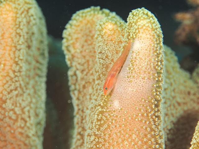 ソラスズメダイに囲まれてのんびりお食事中のウミガメさんでした!
