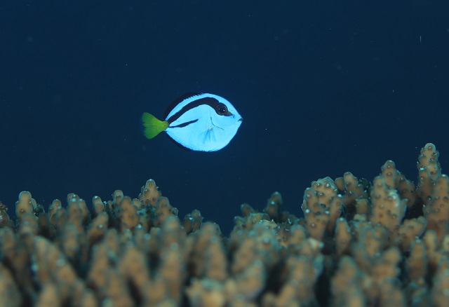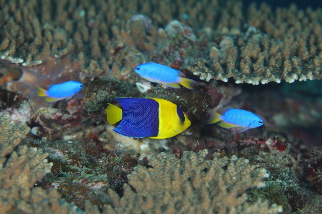 ソメワケヤッコのおちびちゃんもうろちょろ〜♪