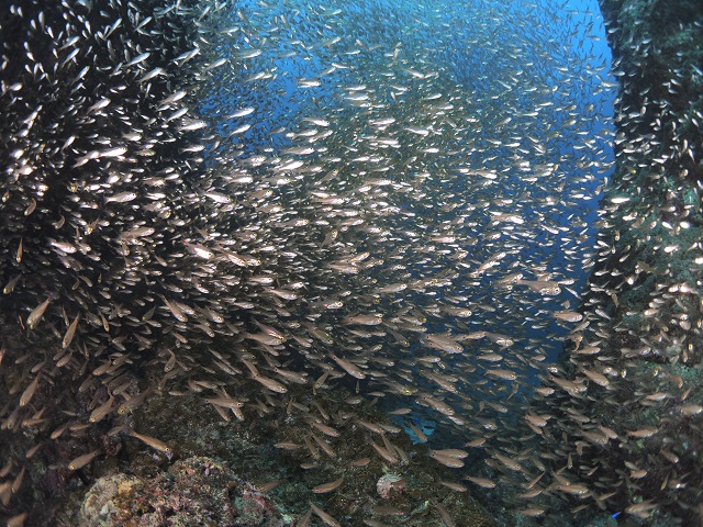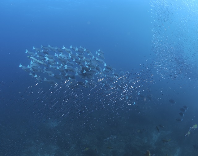 メジナの群れとキビナゴ祭りのコラボ〜っ!