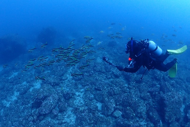 透明度のいい海に、大量のホウライヒメジ達(^o^)