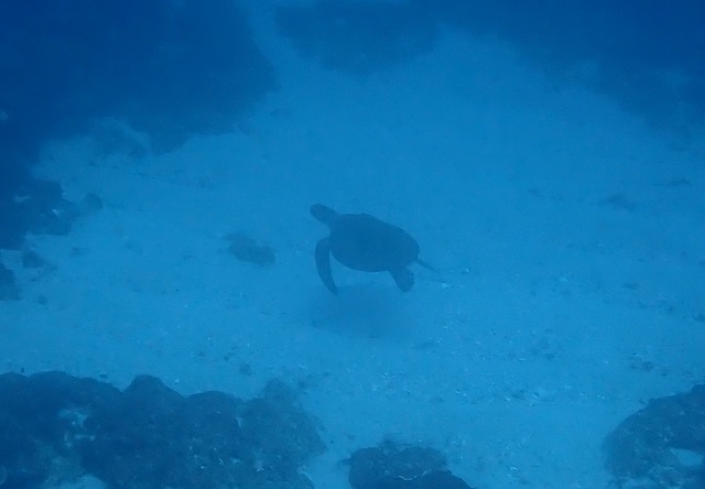 アオウミガメとマダラトビエイの競演というミラクル!!