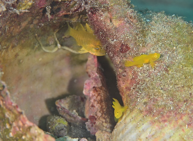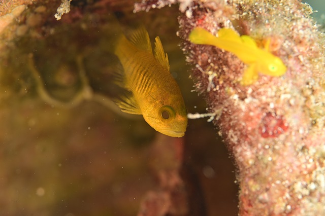 よく見ると、キンギョハナダイやコガネスズメダイに混じっている子です!