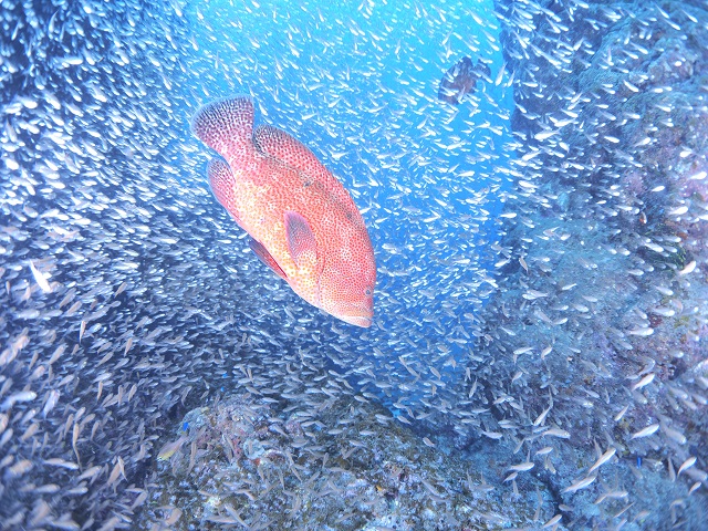 メジナの群れとキビナゴ祭りのコラボ〜っ!