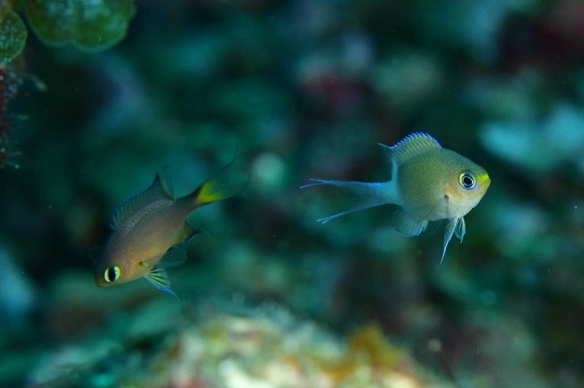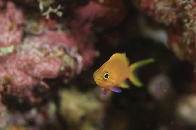 多数出現中のまるちゃんと、ネコ目が可愛いヒレグロスズメダイ〜♪